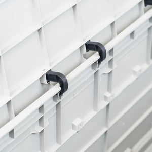 - Estável e durável: o plástico é um material versátil conhecido por ser leve, durável e fácil de limpar. O material consiste em plástico durável e resistente às intempéries, tornando esta caixa de arrumação perfeita para utilização no interior e no exterior.