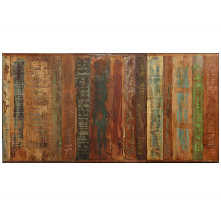 Esta mesa de jantar elegante, num estilo industrial, será um complemento distinto para a sua cozinha ou sala de jantar. Esta mesa de jantar é feita em madeira reciclada maciça, o que significa que possui características de madeiras diferentes tais como teca, madeira de mangueira, acácia, etc. A madeira reciclada é maciça, estável, durável e bonita. Os sinais de desgaste e a artesania atribuem a cada peça um aspeto único e são um acréscimo ao seu espetacular estilo vintage. A mesa de jantar é totalmente artesanal e cada etapa do processo foi realizada com o maior cuidado, seja o polimento, a pintura ou o envernizamento. As pernas em aço completam o seu aspeto industrial juntamente com a estrutura cruzada em aço que contribui para a sua construção robusta. A montagem é bastante fácil. Nota importante: as cores variam de peça para peça, tornando única cada uma das nossas mesas de jantar. A entrega é aleatória.nan