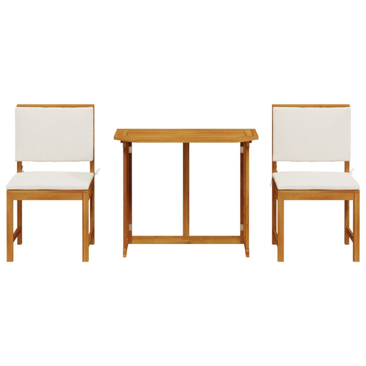 Conjunto de Bistrô para o Jardim de 3 Peças com Almofadas em Madeira de Acácia - Castanho
