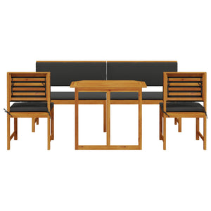 Conjunto de Jantar para o Jardim de 5 Peças com Almofadas em Madeira Sólida de Acácia - Castanho