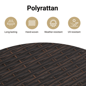 - Material durável: o vime PE, também conhecido como vime de poliéster, é um material sintético resistente e de baixa manutenção que se assemelha ao vime natural. É leve, fácil de limpar e geralmente utilizado em móveis de exterior devido à sua durabilidade e propriedades de resistência à s intempéries.