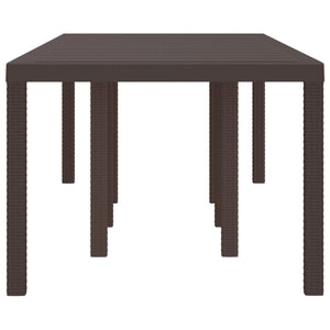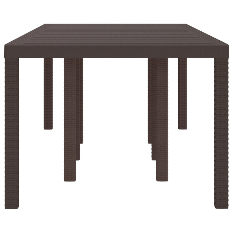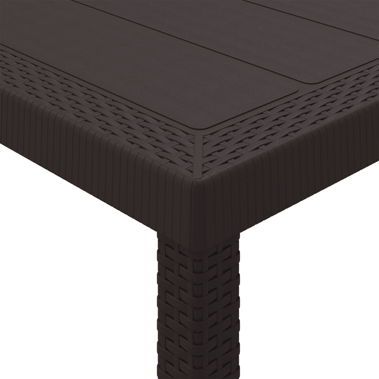 Esta mesa de jantar ao ar livre, feita de plástico sintético de boa qualidade, tem um acabamento marrom bonito, tornando-se uma adição incrível a qualquer pátio ou varanda. Ideal para refeições em família ou reuniões, equilibra estilo e praticidade em todos os teus espaços externos.