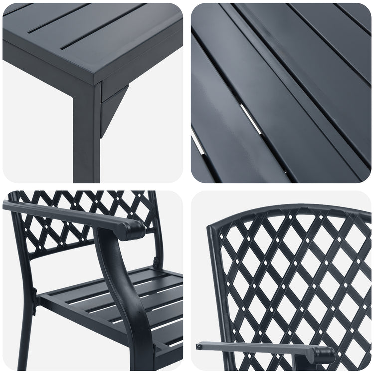 - A mesa e as cadeiras são feitas de aço revestido a pó resistente, garantindo estabilidade e durabilidade impressionantes.