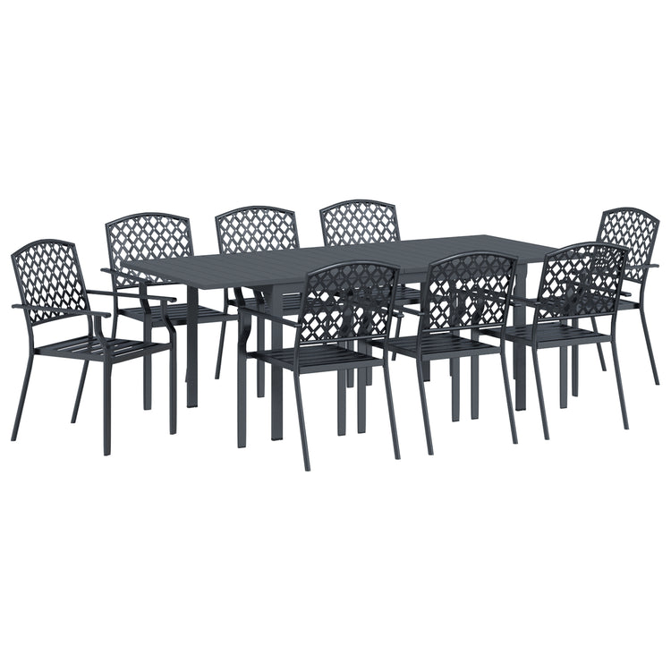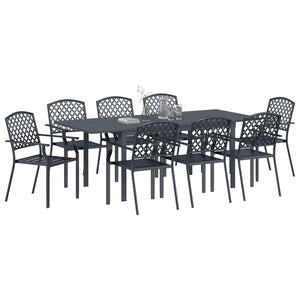 Conjunto de Mobiliário de Corredor HKH 9 Peças Aço Antracite, Mesa de Jardim Extensível HKH Antracite (140-210)x90x73 Cm Aço, Cadeiras de Jardim 4 Pcs Empilháveis Antracite Aço - Cinzento