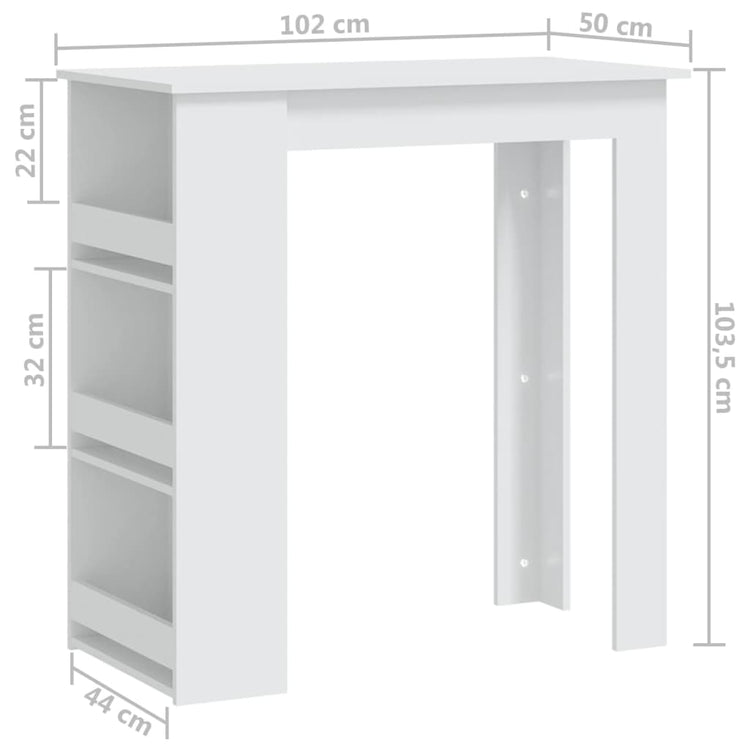 HKH Mesa de Bar com Prateleira em Derivados de Madeira - Branco