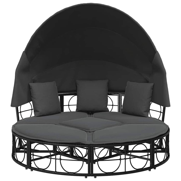 HKH Cama Lounge De Exterior C/ Toldo E Almofadões Vime Pe - Preto