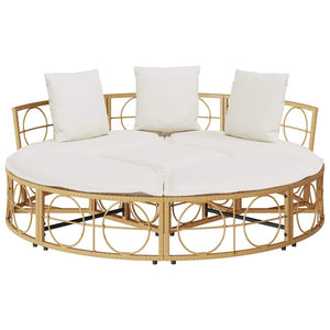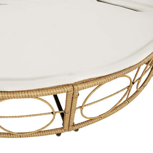 Este confortável sofá lounge de exterior, com almofadões em vime, é a combinação perfeita de estilo e funcionalidade.