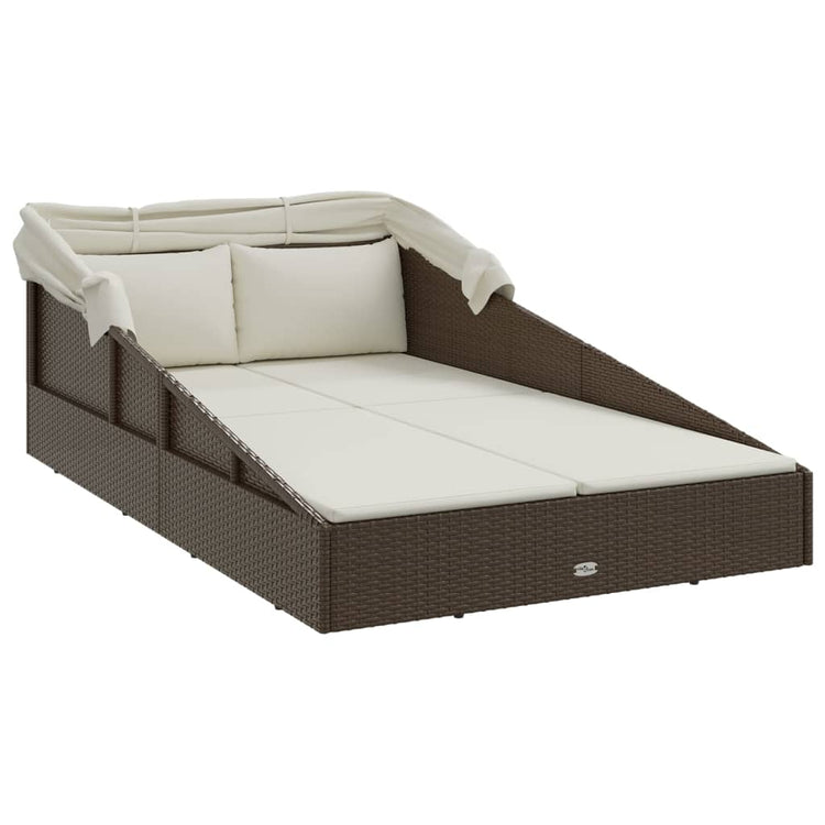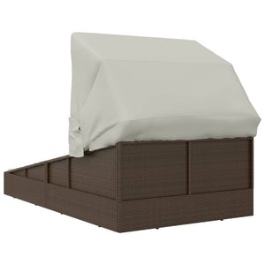 HKH Espreguiçadeira C/ Teto Dobrável 200x114x128cm Vime Pe Castanho - Marrom