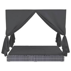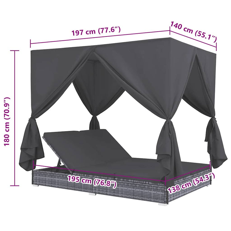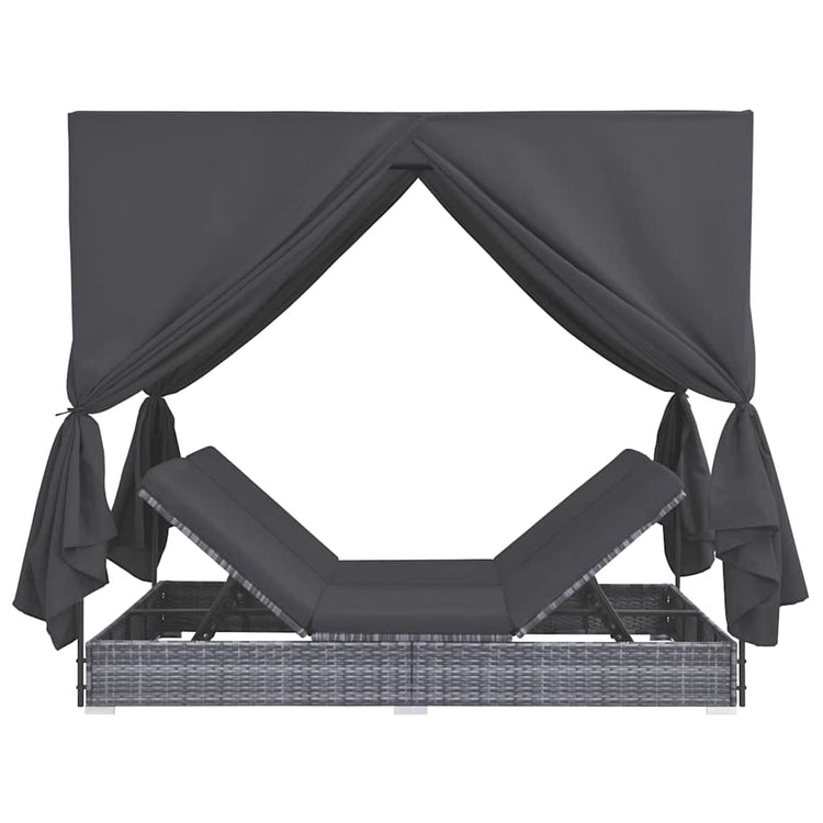 HKH Espreguiçadeira De Exterior Com Cortinas Em Vime Pe Cinzento - Cinzeto
