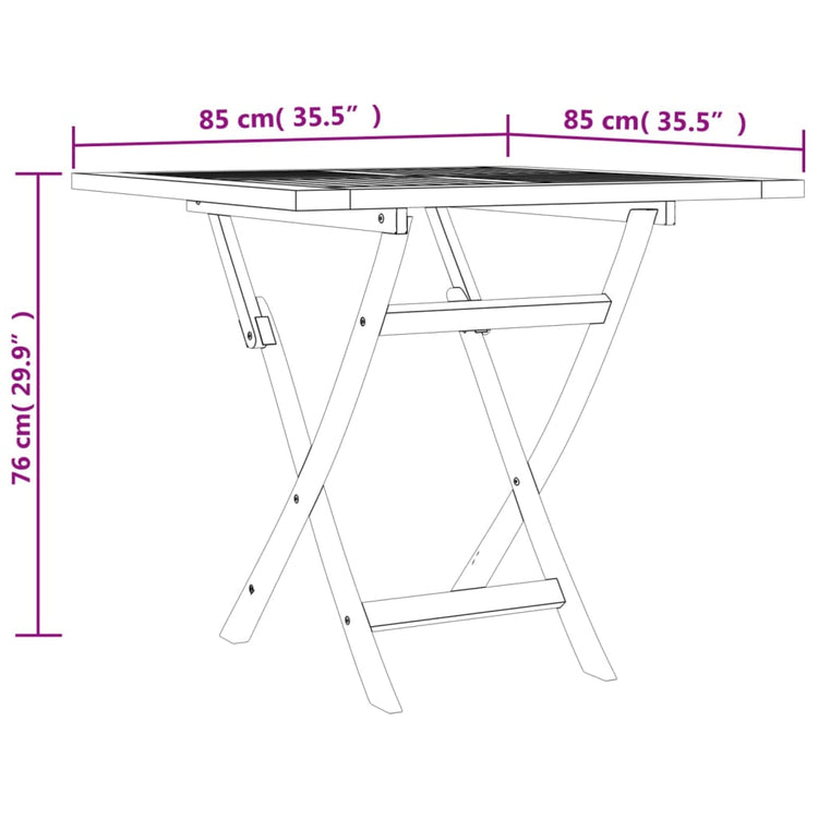 HKH Mesa de Jardim Dobrável 85x85x76 Cm Madeira de Teca Maciça - Marrom
