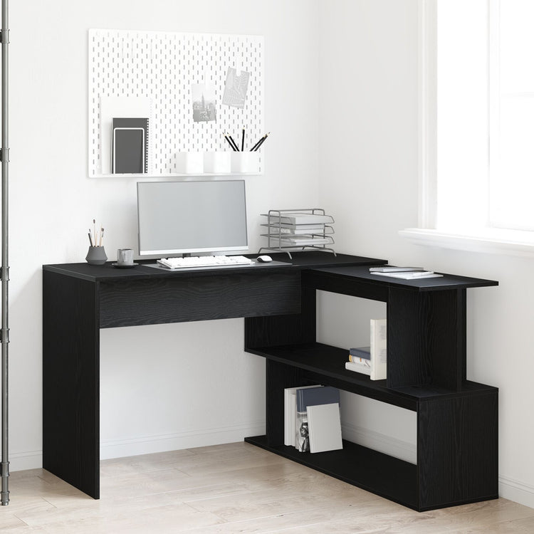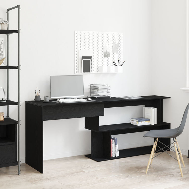 - Design Elegante: A mesa tem uma superfície de carvalho preto moderna que combina bem com a decoração contemporânea, mantendo tudo em ordem e permitindo fácil integração em diversos espaços.
