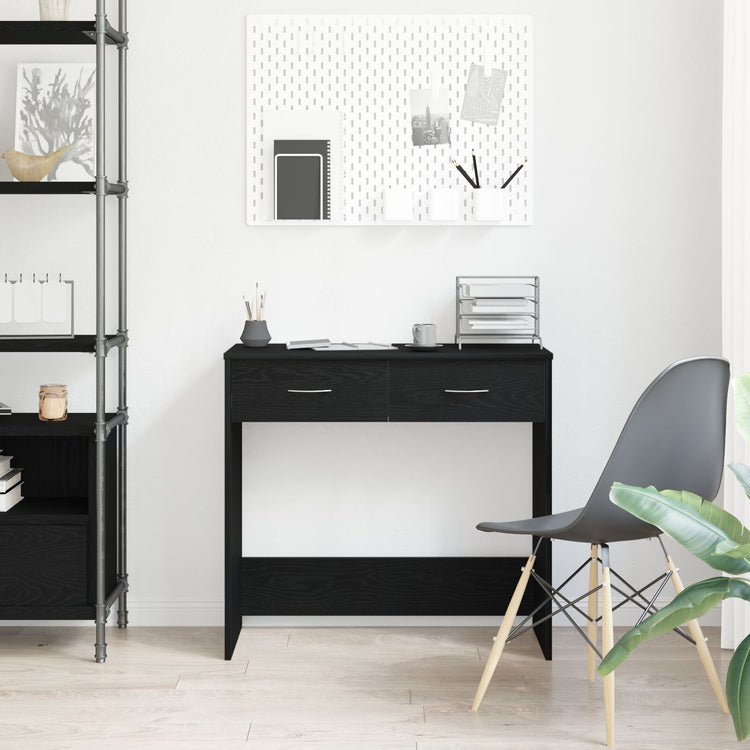 Esta mesa de escrita moderna combina função com estilo contemporâneo, sendo um item essencial para casa e escritório. Com um tampo espaçoso feito de madeira engenheirada resistente, é perfeita para escrever, estudar ou trabalhar no laptop, iluminando qualquer sala de estar, estudo ou espaço de trabalho com seu elegante acabamento em carvalho preto.