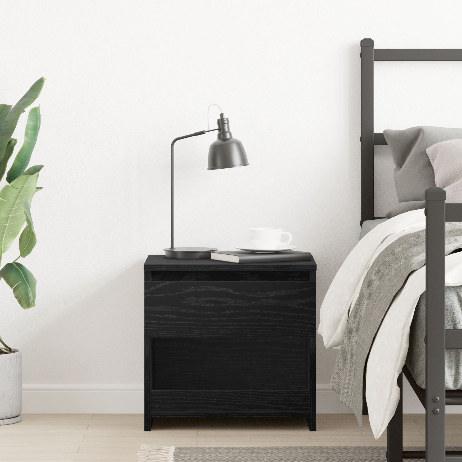 HKH Mesa de Cabeceira com Gaveta - Carvalho Preto