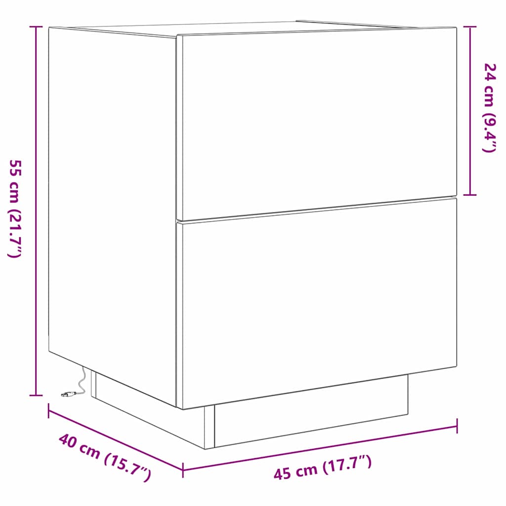 Esse criado-mudo com luzes LED é a adição perfeita pro seu quarto. Com a altura certinha, ele deixa tudo que você precisa à mão e traz um toque descolado pro seu espaço. A ideia é misturar praticidade e estilo pra quem quer um visual moderno sem perder a funcionalidade. Construção em Madeira de Engenharia garante que seja durável e mantenha a boa aparência mesmo com o uso dia após dia. Esse material forte é feito pra durar, sendo uma escolha segura pra decoração do seu quarto. Luzes de Tira LED oferecem um brilho suave e criam uma atmosfera boa no ambiente. Elas ainda são econômicas, então você não precisa acender outras luzes à noite. Design Moderno : Com linhas limpas e um jeito simples, esse móvel traz simplicidade e funcionalidade. Ele se adapta a vários estilos de quartos, juntando estilo e praticidade. Cobertura Resistente à Abrasão aumenta a durabilidade e ajuda a evitar arranhões, garantindo que ele continue com uma aparência boa mesmo com o uso constante. Cuidado e Manutenção : Monte direitinho seguindo as instruções e não use produtos químicos agressivos ao limpar. Isso garante que o seu móvel fique incrível e funcione bem por bastante tempo. Este produto é alimentado por CC 5V, mas a fonte de alimentação USB de 5V certificada não está incluída. Uma tensão mais elevada pode provocar um sobreaquecimento e resultar em danos no dispositivo e no risco potencial de incêndio.nan