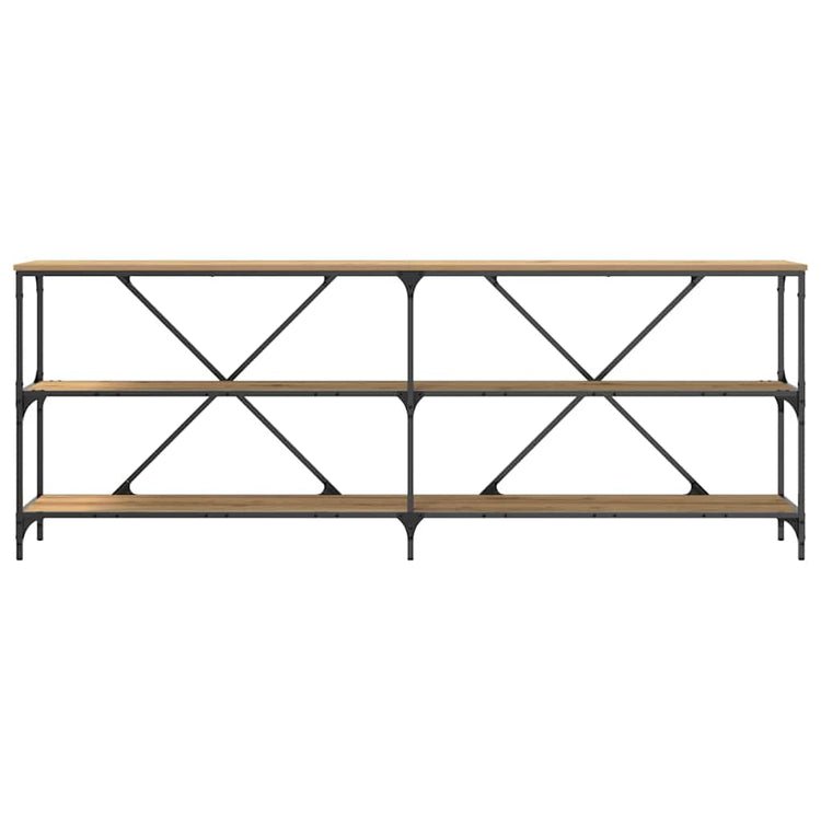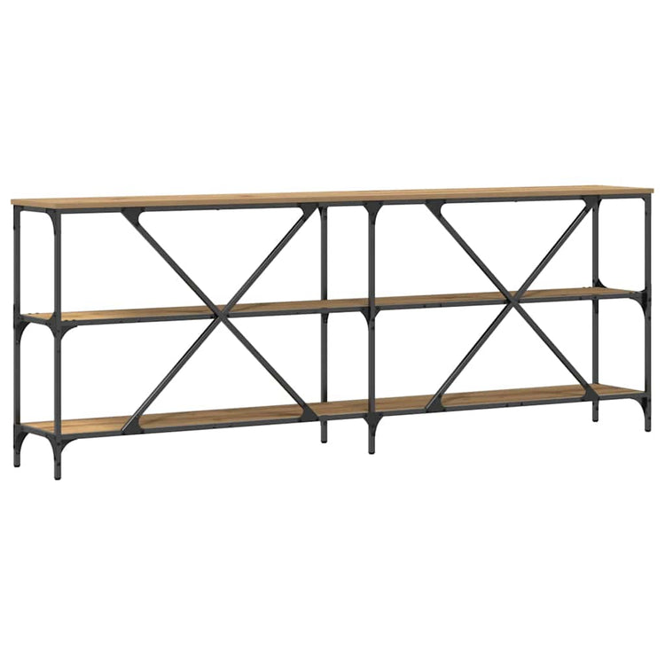 - Materiais: Feita de madeira engenharia de qualidade e detalhes em ferro, essa mesa console é super durável e tem um visual irado. A superfície resistente a arranhões garante que ela dure mesmo em casas agitadas.