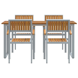 HKH Conjunto de Jantar de Jardim de 5 Peças Cinza em Aço e Madeira Sólida de Acácia - Cinzento