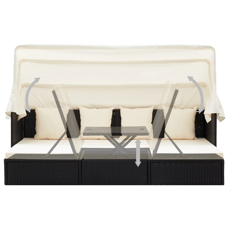 HKH Espreguiçadeira De Jardim Com Teto Vime Pe - Preto