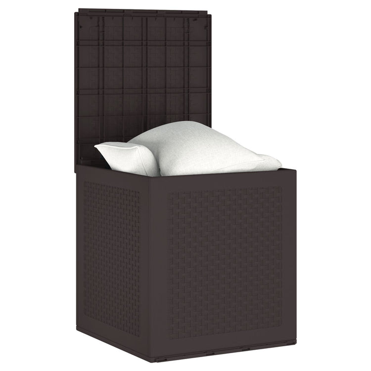 Esta caixa de armazenamento externa média é ideal para manter o teu jardim arrumado enquanto adiciona um toque moderno. Feita de plástico sintético durável, tem uma cor castanha bonita que combina na perfeição com o exterior. É ótima para guardar ferramentas, almofadas e outras coisas.