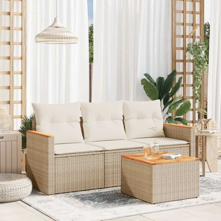 HKH 4 Pcs Conjunto de Sofás para Jardim C/ Almofadões Vime Pe - Bege
