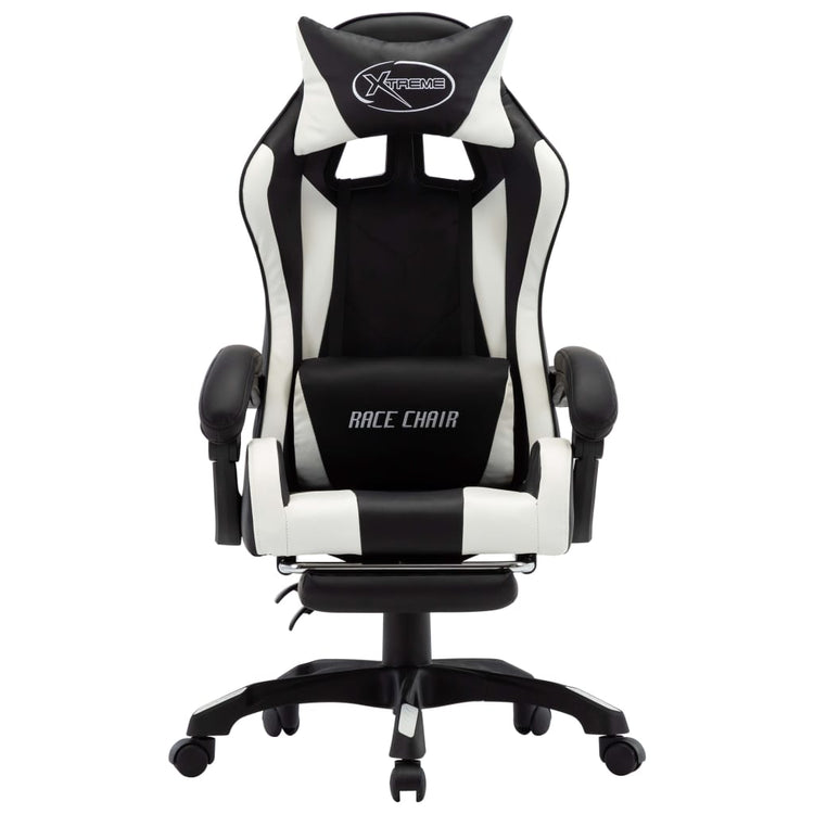 HKH Cadeira Estilo Corrida com Apoio Pés em Couro Artificial - Branco/Preto