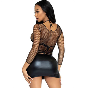 Este design provocante redefine a sensualidade, fundindo a textura intrigante da rede arrastão com um estilo moderno e vanguardista.