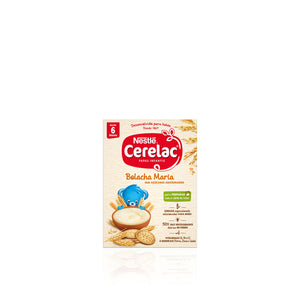 La receta de la NUEVA CERELAC Biscuit Maria, sin azúcar añadido, contiene cereales integrales, que aportan toda la riqueza nutricional del grano. Es una papilla para bebés a base de cereales con gluten, ideal para preparar con leche materna o con la leche habitual del bebé, y que tiene un valor nutricional adecuado para bebés a partir de los 6 meses.