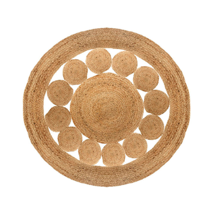 ¡Dale un toque natural a tu interior con esta hermosa alfombra tejida de yute! ¡El patrón de agujeros redondos hace que tu habitación sea elegante!