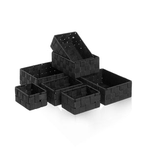 Medidas cesta: 25 x 18,5 x 8,5 cm / 23,4 x 17,2 x 8,5 cm / 21,5 x 15,5 x 8 cm / 19,5 x 14 x 8 cm / 17 x 12,5 x 8 cm/ 15,3 x 11 x 7,5 cm/ 14 x 10 x 7,5 cm. Material: polipropileno.