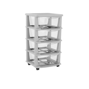 Cajón Practikart Gris con Ruedas y 4 Cajones Transparentes