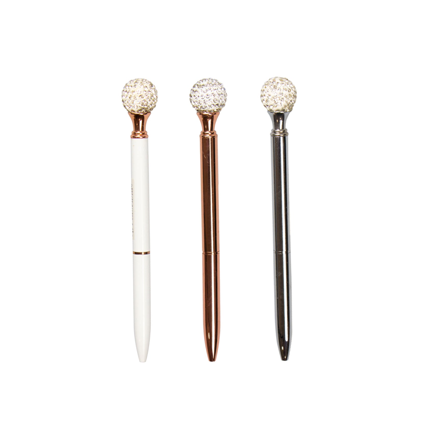 Têm 14 cm de comprimento e contêm uma ponta esferográfica preta que pode ser revelada girando o corpo da caneta. Cada caneta tem um acabamento suave e brilhante e vem completa com uma bola de glitter decorativa de 1,8 cm de diâmetro.