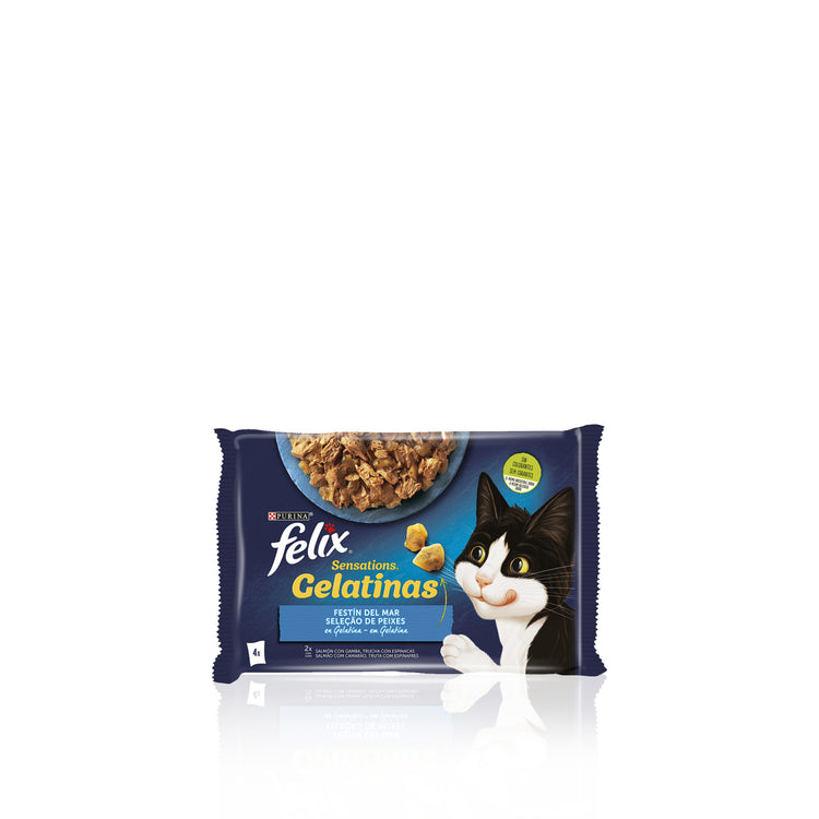 Purina Felix Sensations Comida Húmeda para Gatos Selección de Pescado en Gelatina 4 x 85 gr