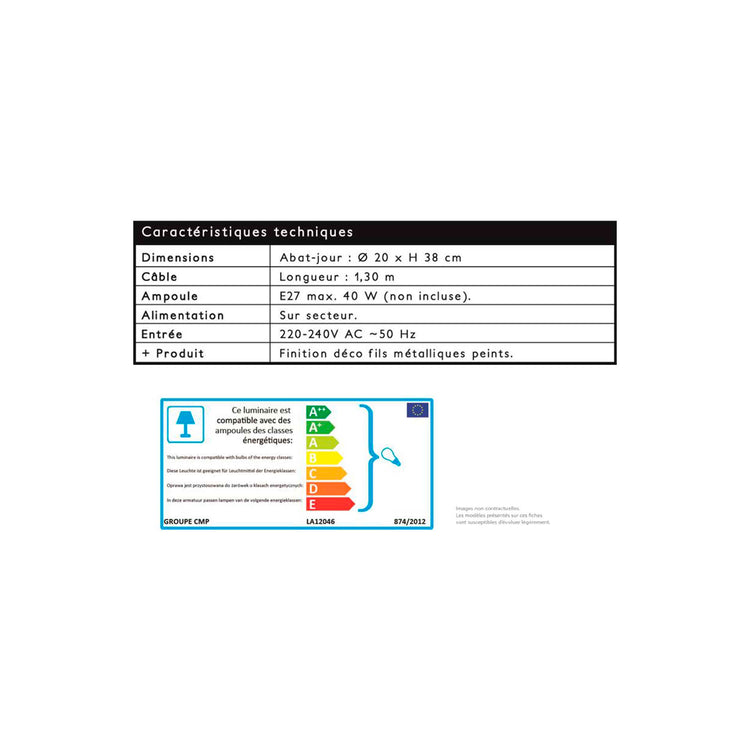 ¡Aporta un toque de exotismo a tu hogar con esta jaula colgante alta, su encanto calentará la estancia ofreciendo una decoración 100% trendy! Detalle: Longitud del cable 1,30 m - Persiana: 20x38 cm - Bombilla E27 max 40W no incluida - Alimentación en sector - Entrada: 220-240V AC 50Hz,