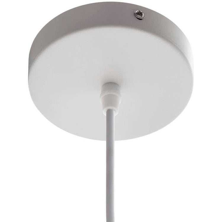 Esta lámpara colgante de bambú se compone de un marco con un aro de hierro, un cable de 50 cm de largo y un portalámparas de PVC y una cortina de metal blanco. Solo tienes que enroscar una bombilla E27 de hasta 40W. Dimensiones: Pr. 40 x Alt. 38 cm