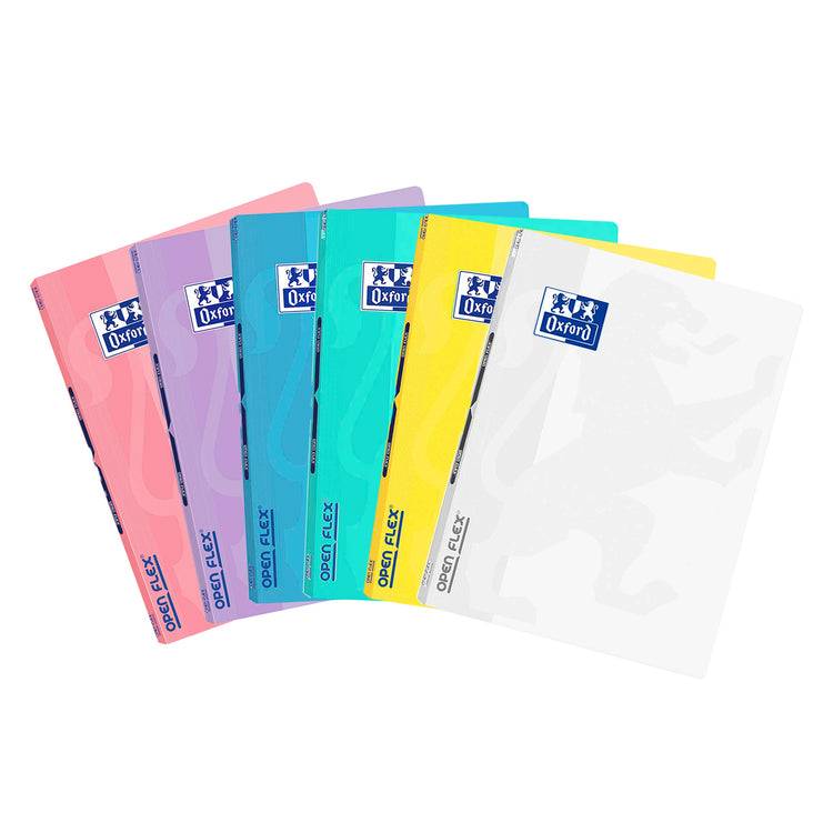 Colores existentes: menta pastel, rosa flamenco, azul pastel, plátano, malva pastel, blanco. Las libretas grapadas OPENFLEX PASTEL cuentan con tapas de plástico flexible de alta resistencia en colores suaves. La patente de fabricación OPENFLEX registrada por Oxford permite una gran flexibilidad a la hora de abrir y cerrar el portátil. Además, incluye una pizarra Write&Erase, en las primeras y últimas páginas, para utilizar con rotuladores compatibles y escribir y borrar tantas veces como sea necesario. Ideal para cálculos, notas, diagramas o gráficos. ¡Descubre los 5 colores de tendencia disponibles!