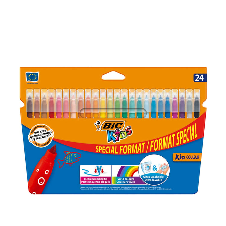 Tinta a base de agua de larga duración. Tinta ultra lavable, se limpia de manos y telas. Punta mediana de 2,8 mm, ultra resistente. Tapa ventilada.