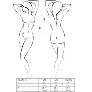O conjunto da coleção Imagine é um fabuloso conjunto de lingerie com um design espetacularmente sexy com o qual você se tornará uma bomba de sedução, fabricado pela prestigiada marca de lingerie Passion