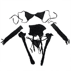 Subblime 952174 Bodystocking de Rede Com Luvas e Diamantes Preto Tamanho Único