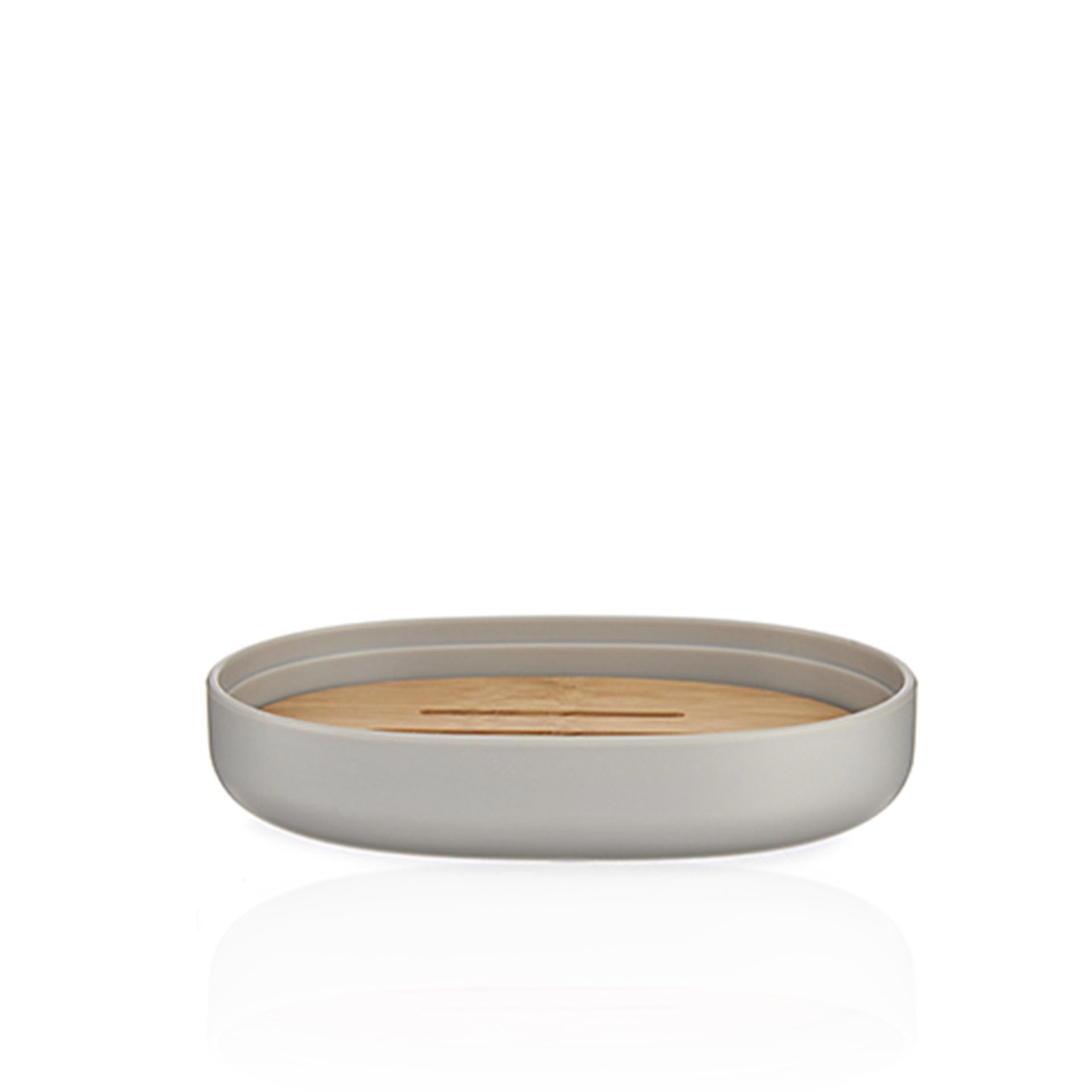 Proveedor:eupoupoJabonera gris con tapa de bambú