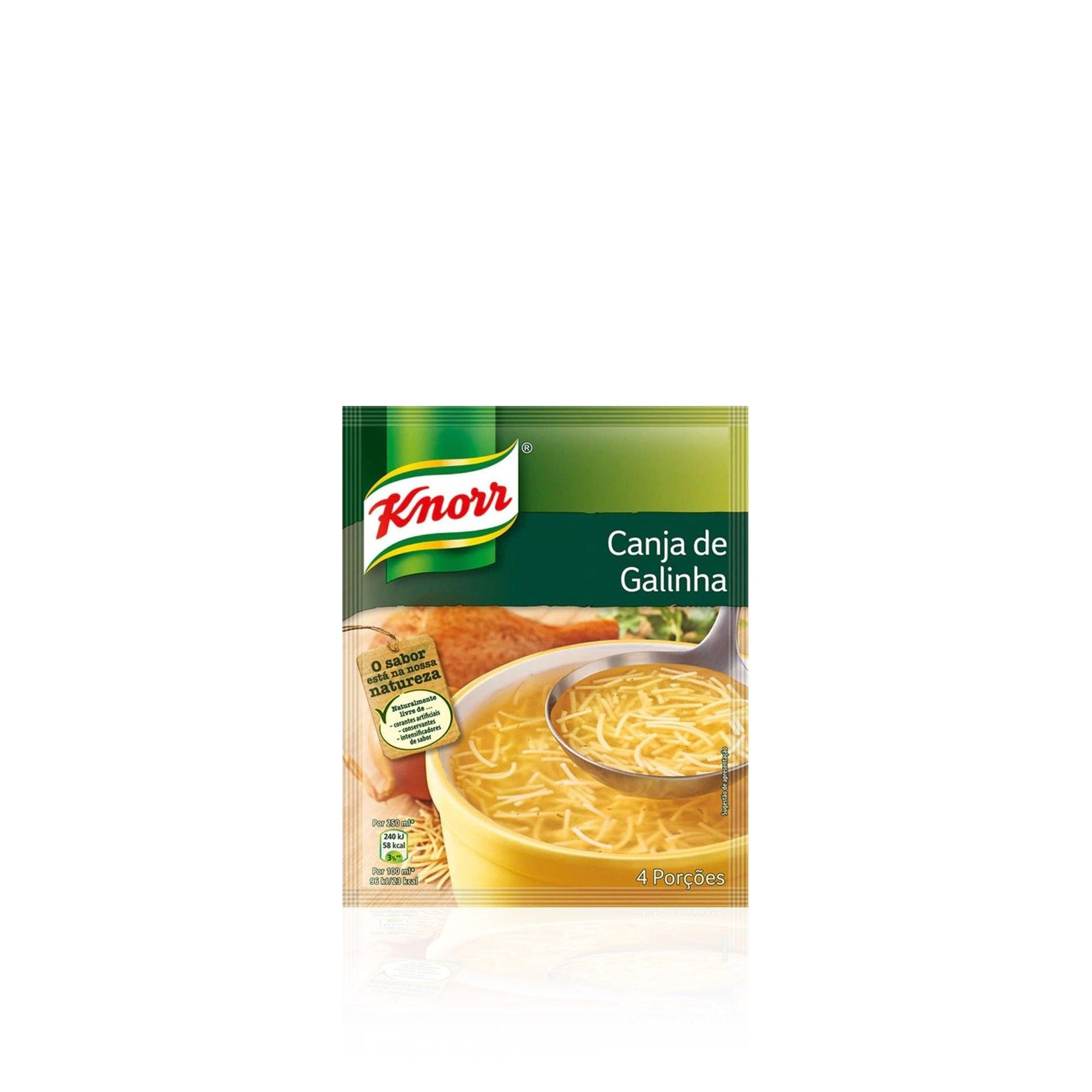 Comer sopa todos los días contribuye a una dieta sana y equilibrada. Rico en sabor y con ingredientes cuidadosamente seleccionados, Knorr Chicken Soup es una manera conveniente de contribuir al equilibrio de su dieta. Prepara una sopa tradicional de forma rápida y muy sabrosa. Ingredientes: Pasta: 62% (sémola de TRIGO duro, sémola de TRIGO), sal, azúcar, carne de pollo (3%), cloruro potásico¹, cebolla (2,4%), aromas, hidrolizado de proteínas vegetales, grasa vegetal de pollo (1,4%), palma grasa, almidón, cúrcuma, perejil (0,1%), jarabe de caramelo, antioxidante (extractos de romero), maltodextrina. Puede contener leche, huevo, apio y mostaza.