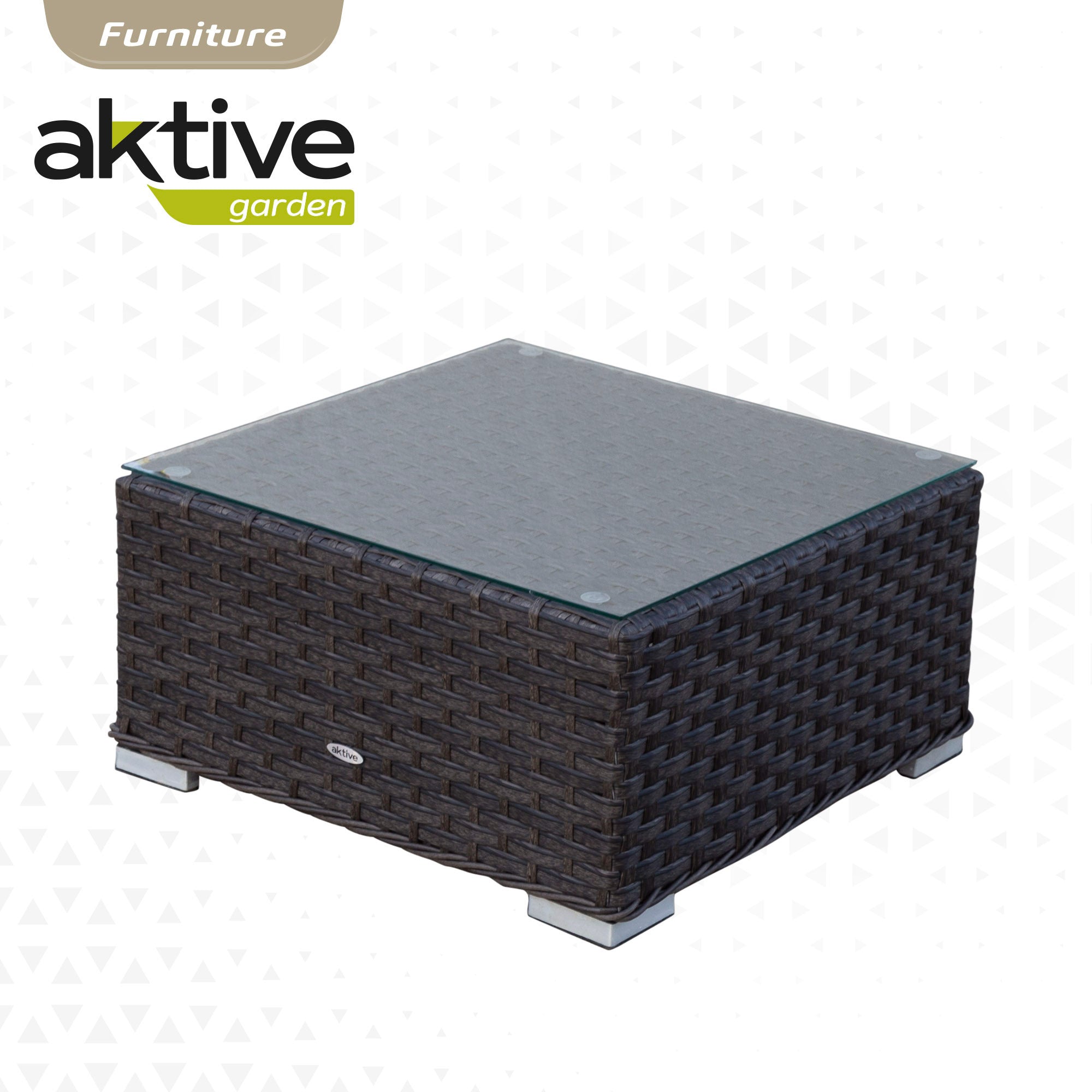 Sofá de canto modular para jardim Aktive Garden cor antracite. Composto por 4 peças que podem ser separadas e rearranjadas: dois sofás, um canto e uma mesa central. O conjunto é feito de vime sintético, um material fácil de limpar, resistente à água e às intempéries. Para maior conforto, este conjunto inclui almofadas acolchoadas (poliéster 180 gramas) tanto para o assento como para o encosto em creme. A mesa de centro possui superfície de vidro para facilitar a limpeza e as pernas do sofá e da mesa possuem proteção. Cada sofá montado mede 140 cm de largura, 77 cm de comprimento e 65 cm de altura; o canto mede 77 cm de largura, 77 cm de comprimento e 65 cm de altura; A mesa mede 62 cm de largura, 62 cm de comprimento e 31 cm de altura. Conjunto ideal para uso em ambientes internos e externos.
