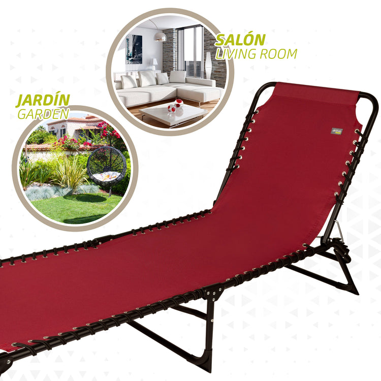 Espreguiçadeira de jardim dobrável vermelho Aktive Garden ideal para se deitar completamente e relaxar na praia, piscina, camping, jardim ou terraço