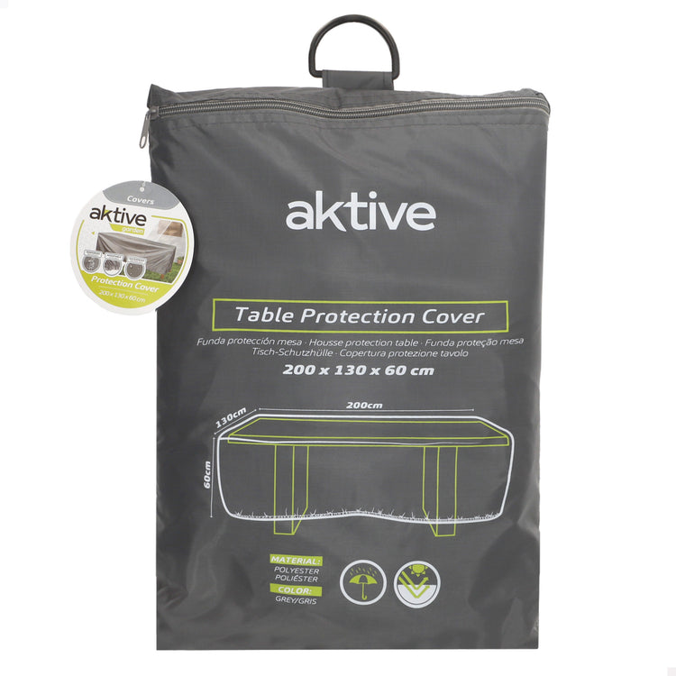 Capa protetora de mesa para jardim ou pátio Aktive Garden. Medidas capa: de 200 cm de largura x 130 de profundidade x 60 cm de altura. Está fabricada em poliéster 60GSM e protege o móvel contra a chuva fina, vento e raios de sol. Inclui uma bolsa com fecho éclair e 1 asa para poder pendurar, guardar e transportar de forma cómoda. Sortida em cor cinza.