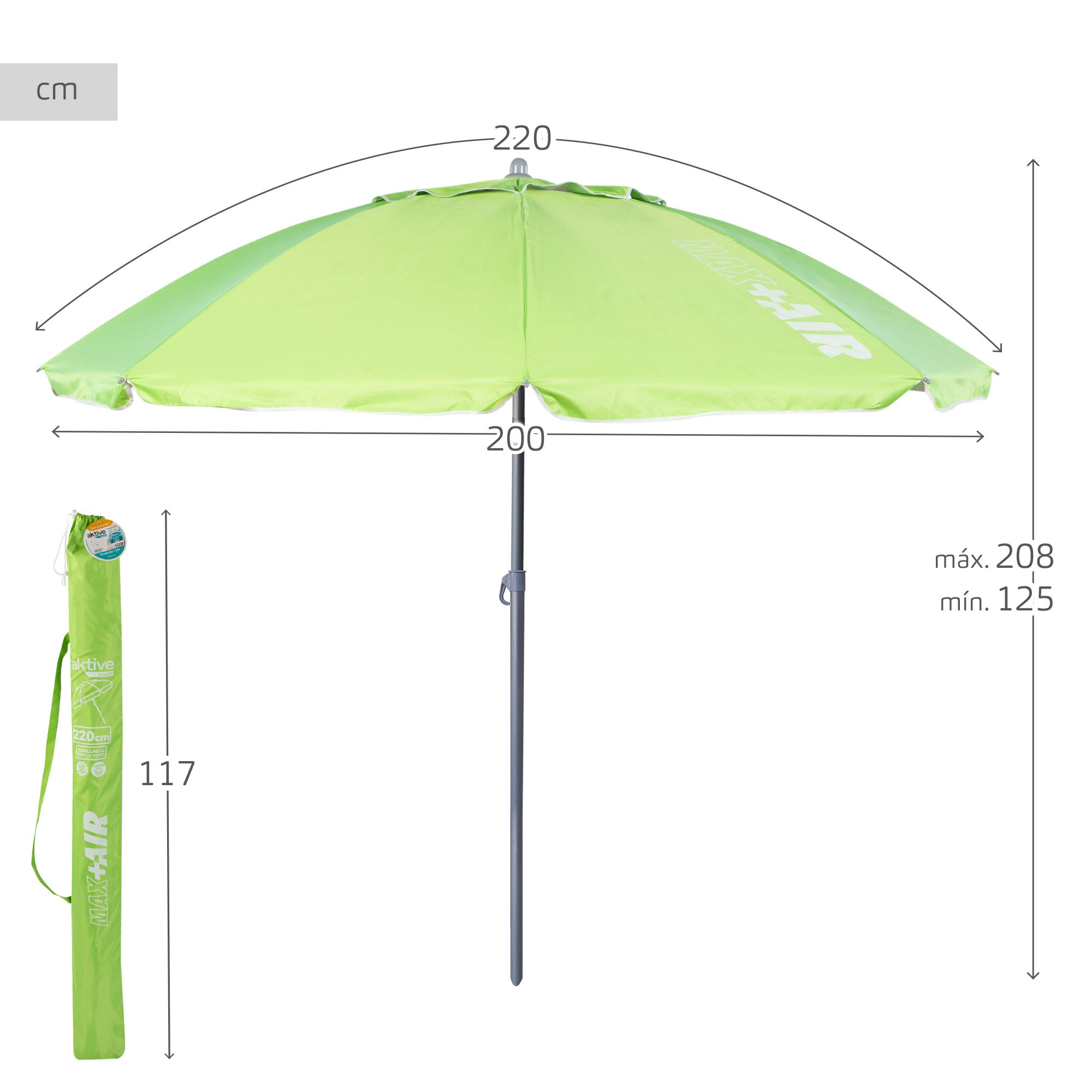 Guarda-sol verde Max Air Ø220 cm à prova de vento com mastro inclinável e ajustável em altura Ø28/32 mm Aktive Beach