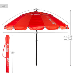 Guarda-chuva de praia à prova de vento de alta qualidade Max Air Aktive Beach. É de cor vermelha e mede Ø195x145/225 cm. É feito de tecido de poliéster de alta qualidade e um poste de alumínio de alta resistência Ø29/32 mm, ajustável em altura e ajustável de acordo com a posição do sol. Incorpora uma chaminé de ventilação que favorece a circulação do ar no seu interior e uma estrutura de 16 hastes flexíveis em fibra de vidro para maior resistência aos ventos fortes. Além disso, seu revestimento interno prateado ajuda a reduzir a temperatura sob o guarda-sol e sua proteção UV50 garante maior proteção contra os raios solares. O guarda-sol vem com uma bolsa com alça de ombro para fácil armazenamento e transporte.