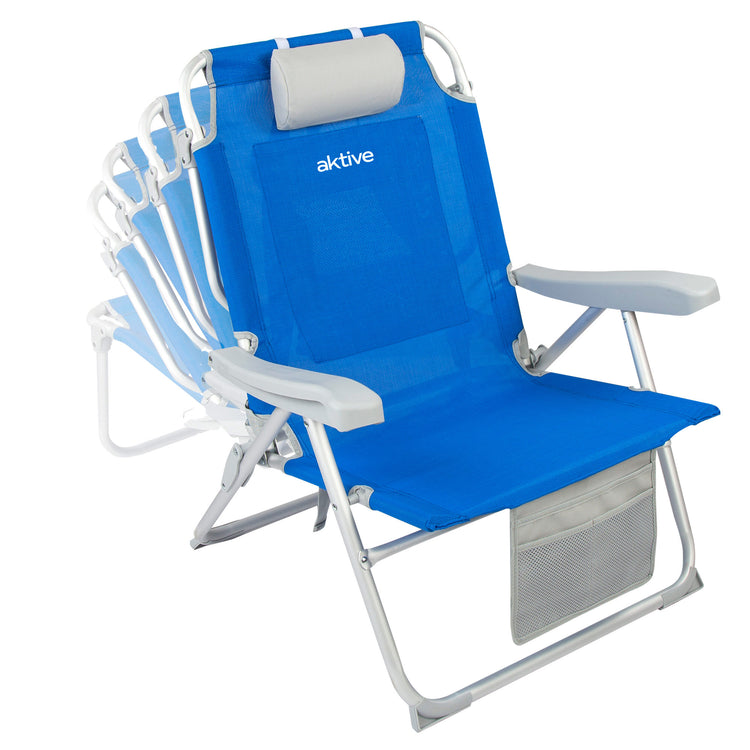 Aktive Cadeira de Praia Mochila Ultrarresistente Xl 110 Kg com almofada, Bolsa e Bolso