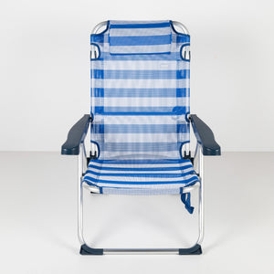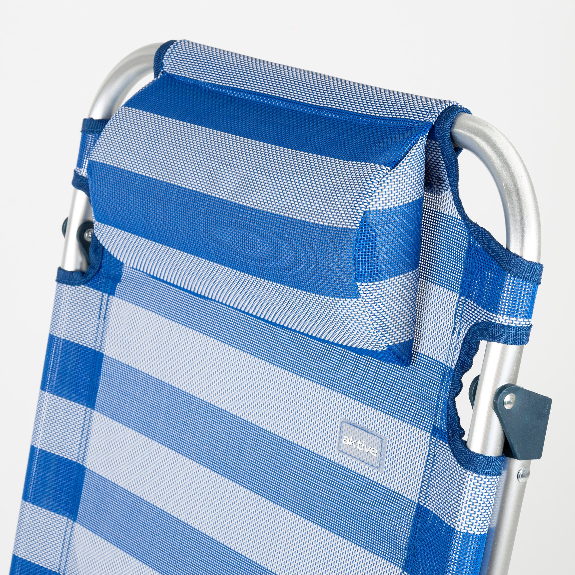 Cadeira de praia dobrável Aktive Beach às riscas brancas e azuis para desfrutar de momentos de descontração na praia