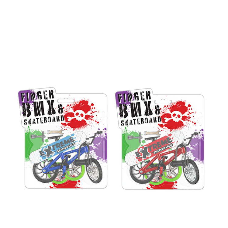 Micro finger BMX e skate, ótimo para entusiastas de skate e bike. Cada conjunto inclui uma bike, um skate e dois pedais. Cada brinquedo pode ser controlado para realizar truques com movimentos suaves dos dedos.