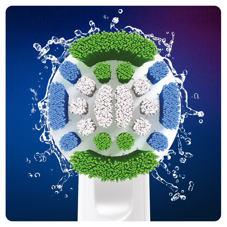 Los cabezales de cepillo de dientes Precision Clean optimizados de Oral-B están diseñados con la tecnología CleanMaximiser que cambia las cerdas de verde a amarillo para un rendimiento óptimo del cabezal de cepillo y la mejor limpieza. Las cerdas especiales eliminan la placa para una limpieza superior de cada diente en comparación con un cepillo de dientes manual normal. Compatible con todos los cables Oral-B excepto Pulsonic e iO.