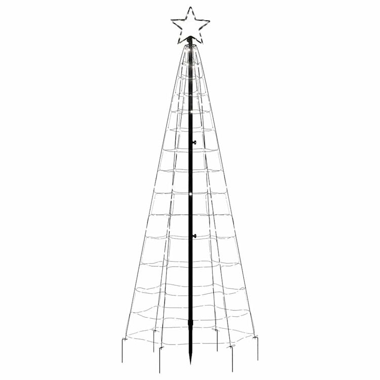 Esta bonita árvore de Natal LED foi criada para criar a atmosfera perfeita para o seu Natal. 8 efeitos de iluminação: a decoração de Natal possui 8 efeitos de iluminação diferentes (combinação, em onda, sequencial, brilho lento, água corrente, desvanecimento lento, cintilante/flash e luz fixa). Pode alternar os modos de iluminação pressionando o botão no USB para criar diferentes atmosferas festivas.Fantástica iluminação para árvore de Natal: a iluminação de Natal para exterior possui bonitos cordões de luzes que o levarão para um mundo digno de um contos de fadas, criando uma atmosfera de Natal maravilhosa pela sua casa!Design compacto: graças ao design inovador desta árvore, a iluminação de Natal para jardim pode ser guardada de uma forma muito compacta e novamente utilizada nas festividades seguintes.Instruções de montagem: as estacas precisam de ser introduzidas no chão. Cada cordão de luzes pode ser inserido no chão com uma estaca de enterrar. A árvore deve ser totalmente estabilizada com várias cordas compridas. Útil saber:O produto inclui um conetor USB que requer uma fonte de alimentação USB de 5V certificada (não incluída).Por favor, certifique-se de que a conexão USB está ligada num ambiente seco.Pode personalizar a sua iluminação para árvore de Natal pendurando os cordões de luzes LED como pretender, uma vez que são fornecidos separadamente. Este produto é alimentado por CC 5V, mas a fonte de alimentação USB de 5V certificada não está incluída. Uma tensão mais elevada pode provocar um sobreaquecimento e resultar em danos no dispositivo e no risco potencial de incêndio. GPSR