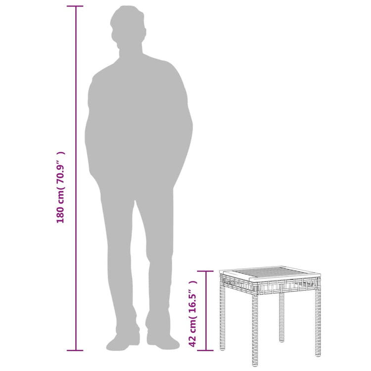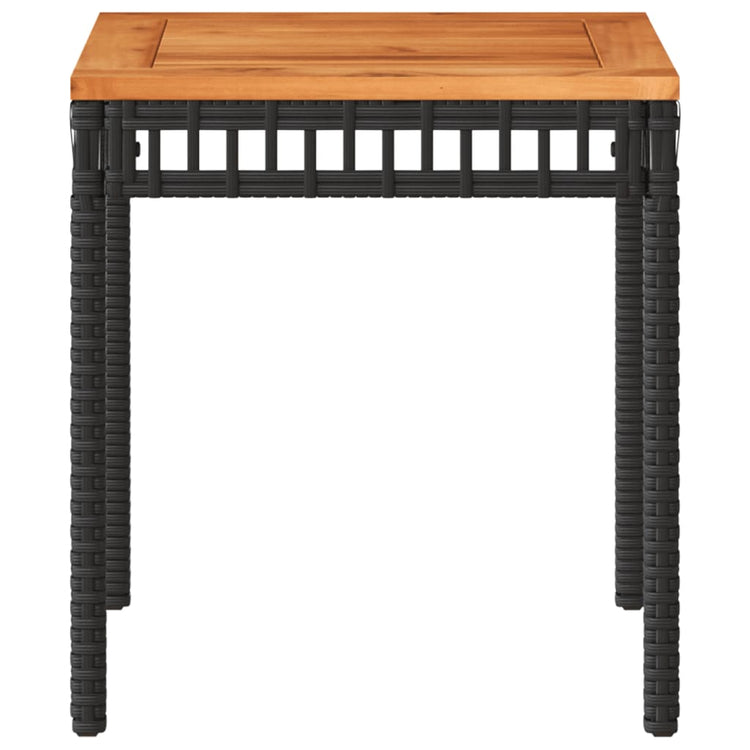 - Material: vime PE, aço revestido a pó, madeira de acácia maciça com um acabamento natural